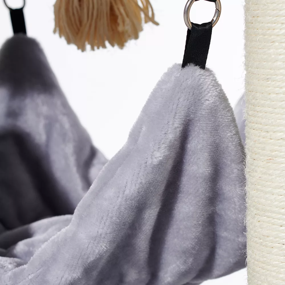 Mais ce n’est pas tout – l’arbre “Ordu” va encore plus loin. Il comprend un hamac douillet, des cachettes confortables et des coussins moelleux pour offrir à votre chat un véritable havre de paix. Observez-le se lover avec bonheur dans son coin de paradis.